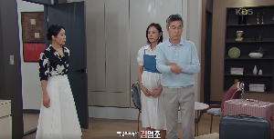 10일 저녁 KBS 1TV의 일일 드라마 ‘수지맞은 우리’에서는 진도영(김종훈 분)과 채두리(송예빈 분)가 양가의 결혼 반대에 맞서 가출을 결심하는 장면이 그려졌다. 이로 인해 분노한 장윤자(조미령 분)의 모습이 시청자들에게 전해졌다.
