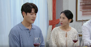 [한현성(신정윤 분)이 가족들이 모인 자리에서 회사에 사표를 제출하였다고 선언을 하자 김희정이 놀란다.]