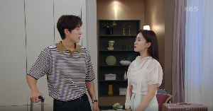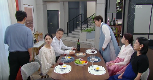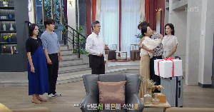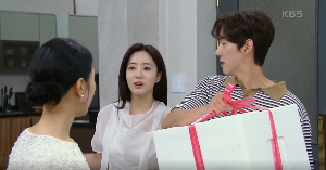 [마당있는 집으로 신혼여행을 갖다가 돌아오면서 선물을 김희정에게 주면서 엄마가 갖다드리라고 했다고 말한다. 김희정은 엄마가 아니라 장모님 이라고 말하면서 서운해 한다.]