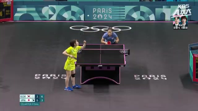 신유빈 선수의 서비스가 일정하지 않았던 순간이 있지만, 다시 랠리를 이어갔죠.