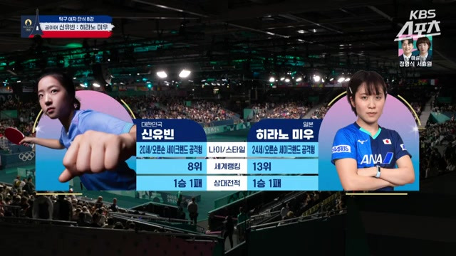 히라노 미유 선수도 강하고 빠르게 대응했으나, 신유빈 선수의 능숙한 랠리에 밀렸죠.